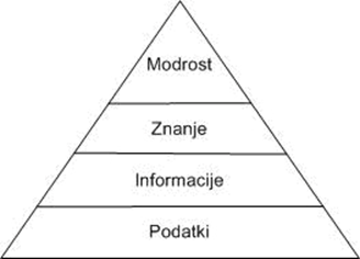 Slika 1: Model podatki–informacije–znanje–modrost (PIZM) (Šercar in Brbre, 2007)