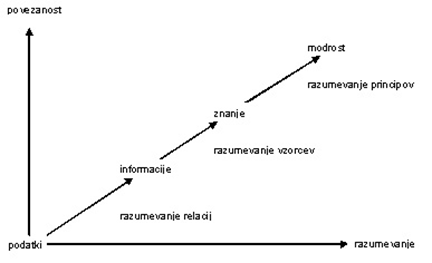 Slika 2: Diagram tranzicije od podatkov in informacij do znanja in modrosti (Šercar in Brbre, 2007)