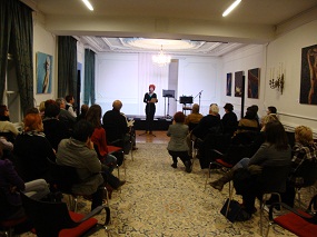 29. november 2011 - Odprli smo razstavo Draga Moma »Lebdeče praznine« - Ob 18. uri smo v galeriji RRRudolf odprli razstavo Draga Moma »Lebdeče praznine«. Pripravili so jo Javni sklad Republike Slovenije za kulturne dejavnosti, območna izpostava Maribor, Zveza kulturnih društev Maribor in Literarna hiša Maribor. O avtorju in njegovem delu je spregovoril Marjan Pungartnik, ki je razstavo tudi odprl, avtor pa je spregovoril o razstavljenih delih. Razstavo sta pripravili Neva Kovačič in Katarina Simončič, postavil pa jo je Drago Mom sam.