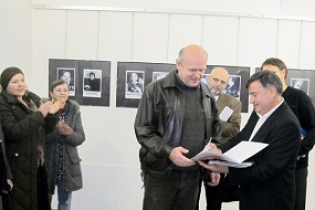 14. november 2012 - Ivan Vinovrški: 43 Borštnikovih prstanov - Ob 18. uri smo v galeriji RRRudolf odprli dokumentarno fotografsko razstavo Ivana Vinovrškega 43 Borštnikovih prstanov. Marjan Pungartnik je na začetku pozdravil med prisotnimi Janeza Karlina in prejemnike Borštnikovega prstana Minu Kjuder, Milado Kalezič in Petra Ternovška. Naštel je šestnajst prejemnikov Borštnikovega prstana iz Maribora in okolice. Sonja Blaž je prebrala besedilo odsotnega Toneta Partljiča o Ivanu Vinovrškem, ta pa je skupaj z Maticem Varlom izročil prisotnim prejemnikom Borštnikovega prstana, Lidiji Koren, Angelce Jenčič Janko, prevzel pa jih je sin Samo Jenčič, in Franciju Rajhu fotografije in spominsko darilo JSKD. Zatem so imeli besedo Minu Kjuder, ki je govorila o Mariboru kot domu, Milada Kalezič, ki je poudarila subtilnost fotografij Ivana Vinovrškega, in Peter Ternovšek, ki je komentiral črnobele fotografije razstave z monologom iz Cankarjevih Hlapcev: »Črno, vse črno .... Razstavo je odprl Janez Karlin in se spomnil treh nosilcev Borštnikovega prstana, ki so začeli gledališko kariero v okviru gledališča KUD Slava Klavora: Danila Benedičiča, Milene Muhič in Milade Kalezič. Za razstavo imajo velike zasluge njen avtor, Katarina Šurbek in Slavko Rečnik, ki so pomagali spraviti v red galerijo po razstavi Liberation Art.