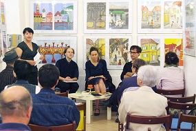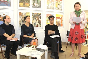 28. maj 2013 - Marina Bahovec »Zgodba leta« - Ob 18. uri je bila gostja Literarne hiše Maribor Marina Bahovec, pisateljica in slikarka. Leta 2012 je izšel pri založbi Apokalipsa njen roman Zgodba leta, ki ga je predstavila v pogovoru z Marjanom Pungartnikom. Sicer pa sta se pogovarjala tudi o njenem slikarskem in pesniškem delu. Ob pogovoru je v ozadju tekla projekcija z avtoričinimi slikami.