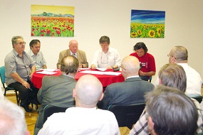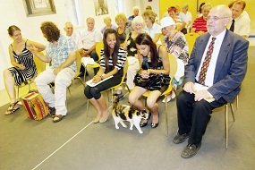 četrtek, 7. junij 2012 - GostiM Besedo - Víctor Obiols in Brane Mozetič - Ob 18. uri sta v okviru programa GostiM Besedo, ki ga izvaja v okviru EPK Društvo slovenskih pisateljev, nastopila katalonski pisatelj Víctor Obiols, njegov gostitelj, ki ga je predstavil in mu tudi zastavil nekaj vprašanj, je bil pesnik Brane Mozetič. Víctor Obiols, ki je ob pisanju tudi glasbenik ,je svoj nastop prepletel z nekaj svojimi skladbami. Njegovo pesem je brala Nina Kokelj, prevajalski del pa je odlično opravil Janko Remec.