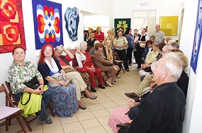 27. avgust 2014 - Nevenka Žlender »Motivi, ki se prostrejo«, razstava krpank - V sredo, 27. avgusta 2014 smo ob 18. uri v galeriji RRRudolf v sodelovanju Javnega sklada RS za kulturne dejavnosti, Območna izpostava Maribor, Zveze kulturnih društev Maribor in Literarne hiše Maribor odprli razstavo krpank Nevenke Žlender »Motivi, ki se prostrejo«. Nevenka Žlender se z oblikovanjem in šivanjem krpank (patchworka) ukvarja od leta 2001, vendar je v tem času skupinsko in samostojno razstavljala v Sloveniji, Avstriji, Švici, Nemčiji, na Češkem, Franciji in v Angliji. Z avtorico, ki je predstavila svoje delo s krpankami in quilti, se je pogovarjal Marjan Pungartnik, pred številnim občinstvom pa jo je odprl predsednik Zveze kulturnih društev Maribor mag. Franci Pivec.