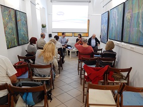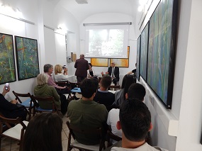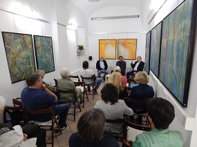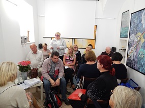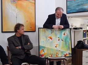 2. oktober 2019 - Vinko Prislan: Vilinski ples in Potovanja, dva cikla slik - V galeriji RRRudolf smo ob 18. uri odprli razstavo Vinka Prislana Vilinski ples in Potovanja, dva cikla slik. Avtor je bil leta 2018 udeleženec radne slovenske delegacije na 157. razstavi Salon Des Beaux Arts v Louvru. O avtorju in razstavi je govorila Tatjana Pregl Kobe.